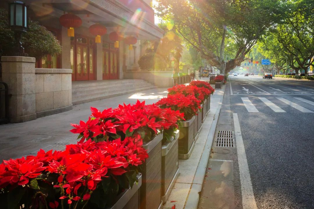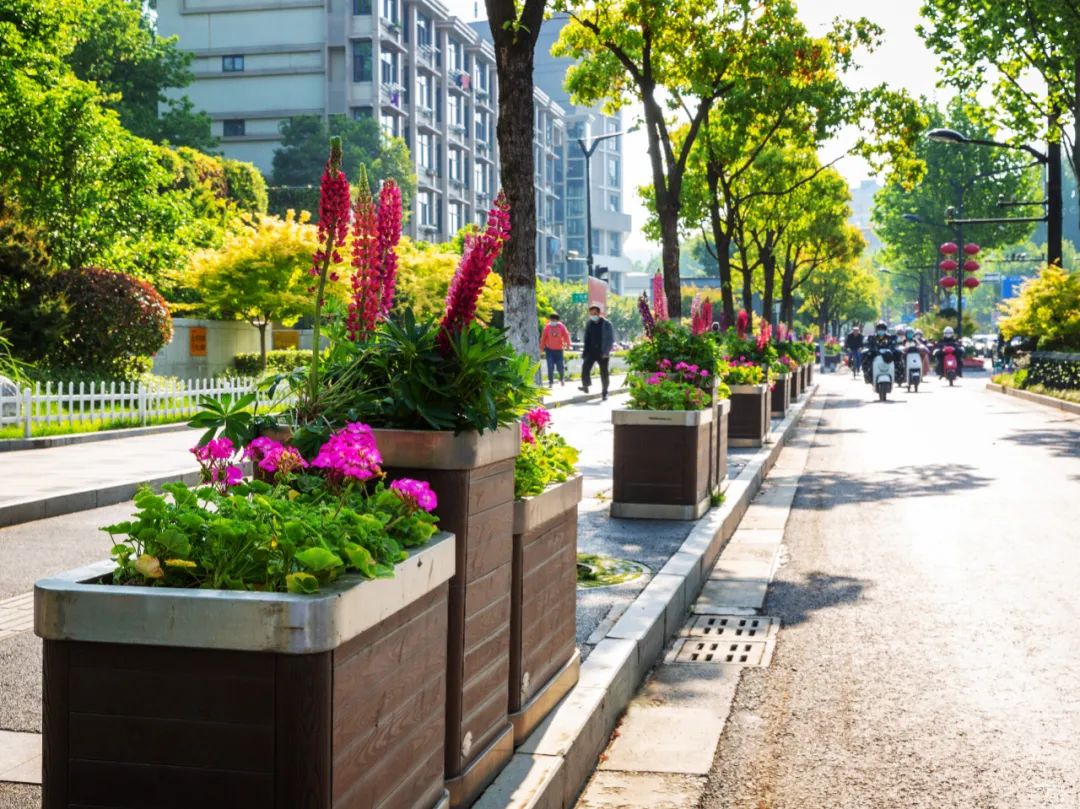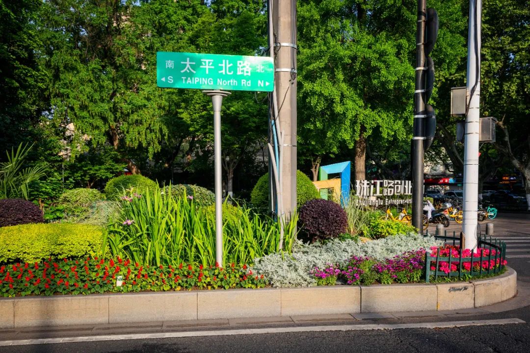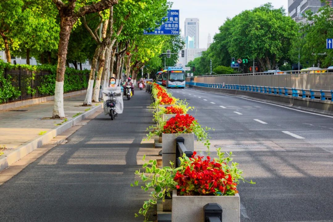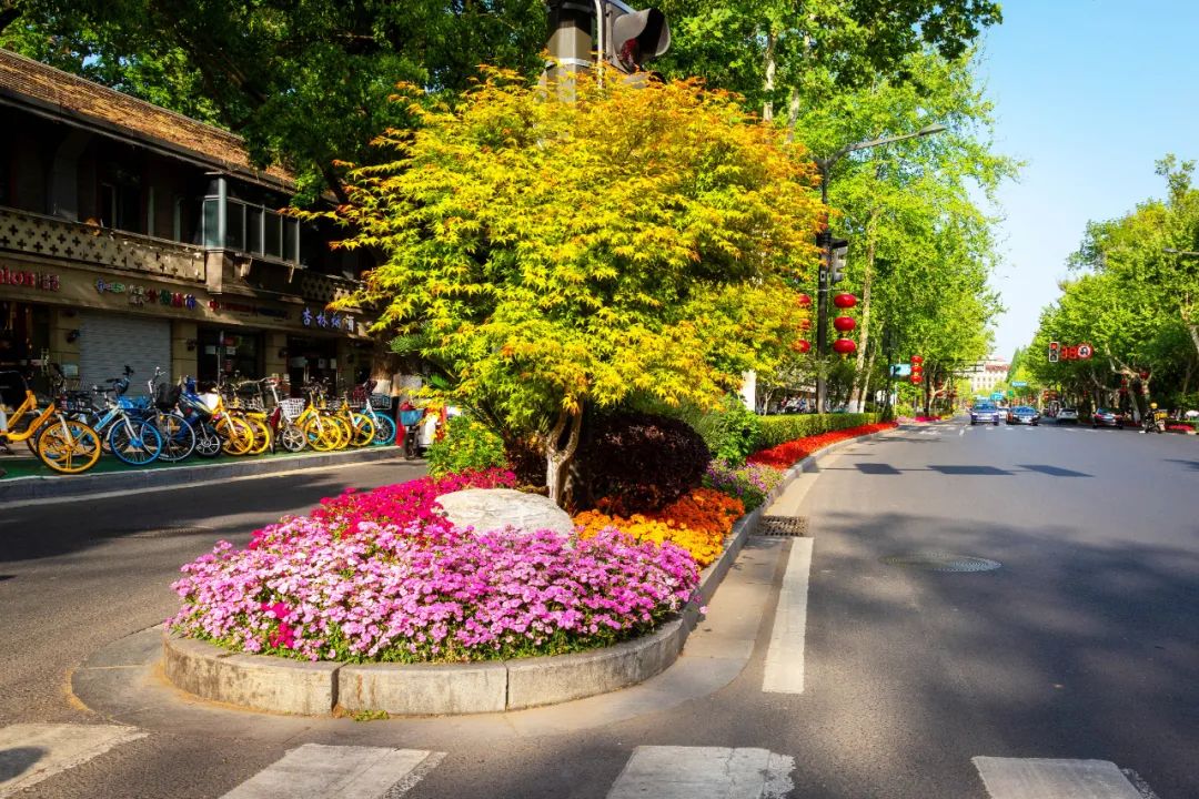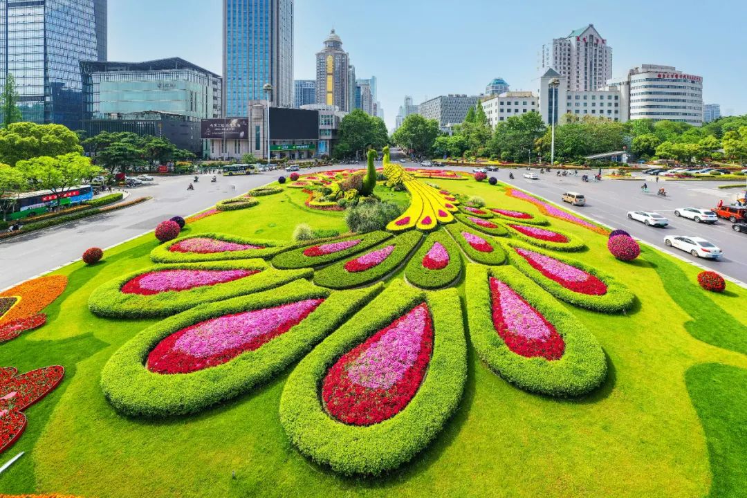 對(duì)市府門前路、長(zhǎng)江路、九華山站、荔枝廣場(chǎng)、中山門城墻等重要節(jié)點(diǎn)容器花箱、花球、燈桿掛花及新街口東北角綠地進(jìn)行花卉布置,選用朱蕉、羽扇豆、毛地黃、天竺葵、桑貝斯鳳仙、金雀、澳洲朱蕉、變?nèi)~木、四季海棠、鼠尾草、歐石竹、垂掛牽牛等花卉,以色彩鮮明、層次豐富的設(shè)計(jì)感,裝扮城市街角,營造濃厚的節(jié)日氣氛。