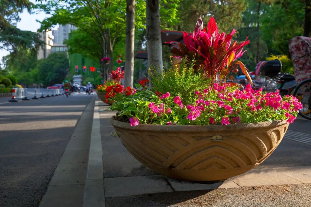 鼓樓市民廣場(chǎng)花境、組合花碗、花傘等繼續(xù)以色彩豐富、花卉進(jìn)行布置,裝扮生機(jī)盎然、環(huán)境宜人的城市客廳。