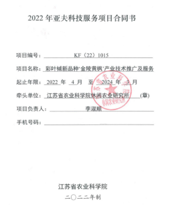 近日,金杉生態(tài)環(huán)境科技(南京)有限公司與江蘇省農科院休閑農業(yè)研究所聯(lián)合推動的<‘金陵黃楓’產業(yè)技術推廣及服務>成功申報2022年亞夫科技服務項目。