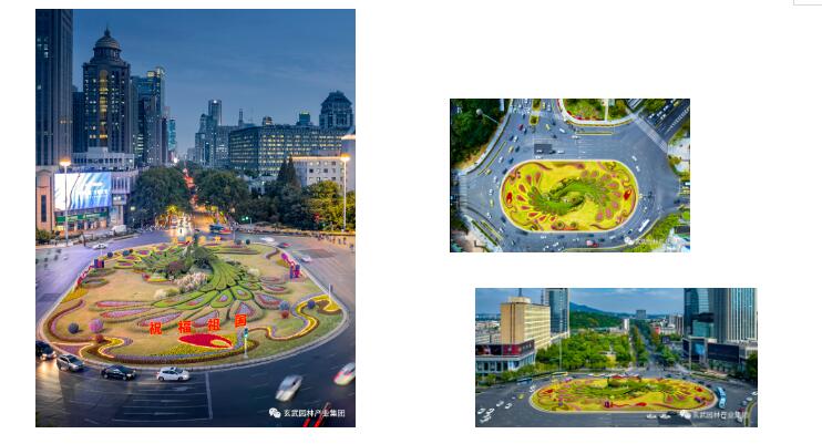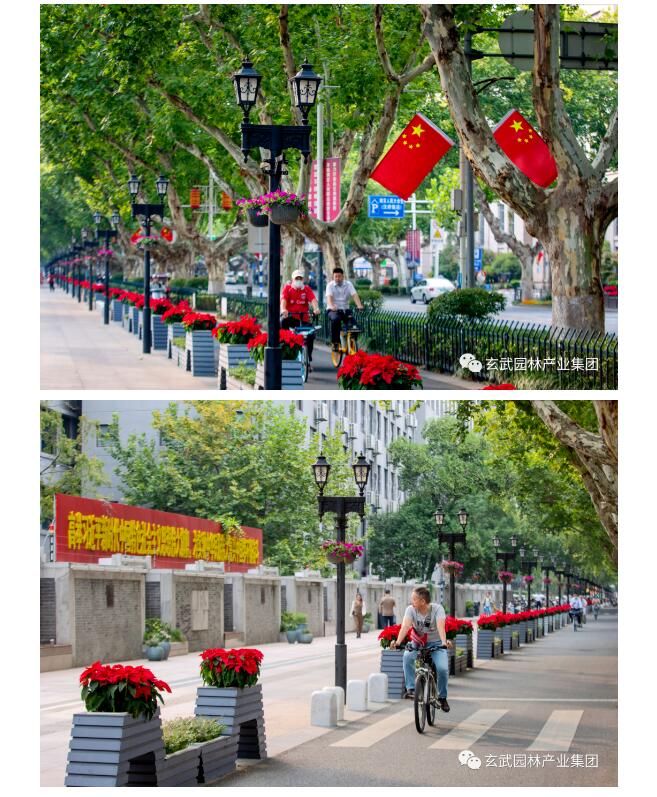 對北京東路、珠江路、市府門前路、太平北路、玄武大道、龍蟠路等綠島及島頭花境選用一品紅、萬壽菊、三角梅、洋鳳仙、麗格海棠、矮牽牛、歐月、藍雪花、超級海棠、翠蘆莉、一串紅、孔雀草、石竹等靚麗多彩、品相精致的花卉進行布置,城市街景處處繁花似錦、百花齊放,營造栩栩如生、欣欣向榮的景觀效果。